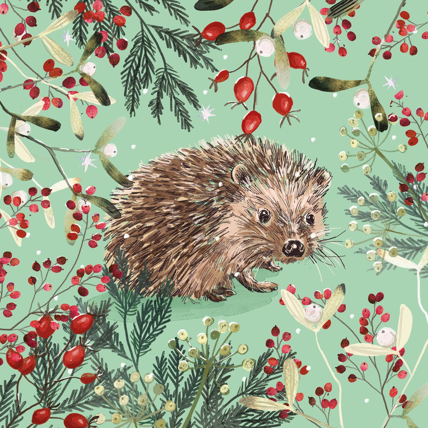 Christmas Cards Pack of 10 - Berry Merry Hedgehog