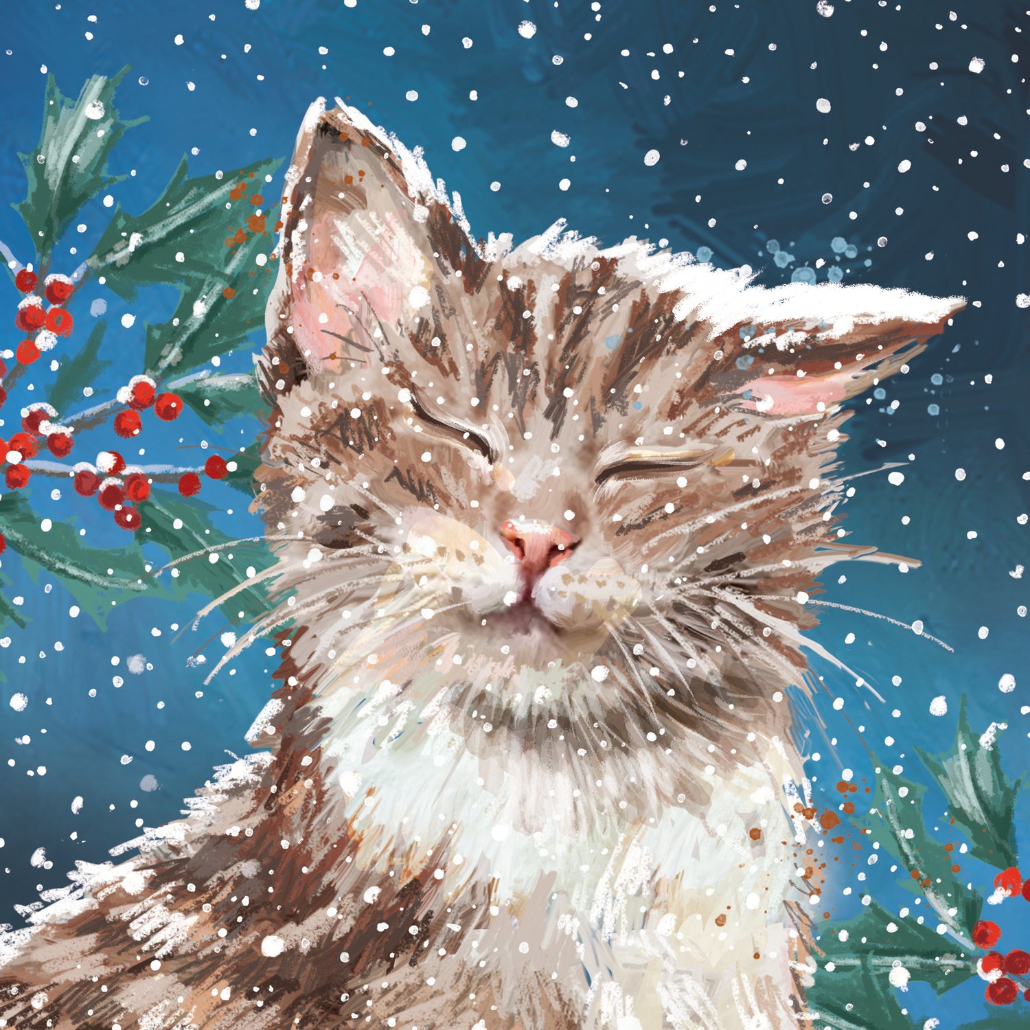 Christmas Cards Pack of 10 - Christmas Holly Cat